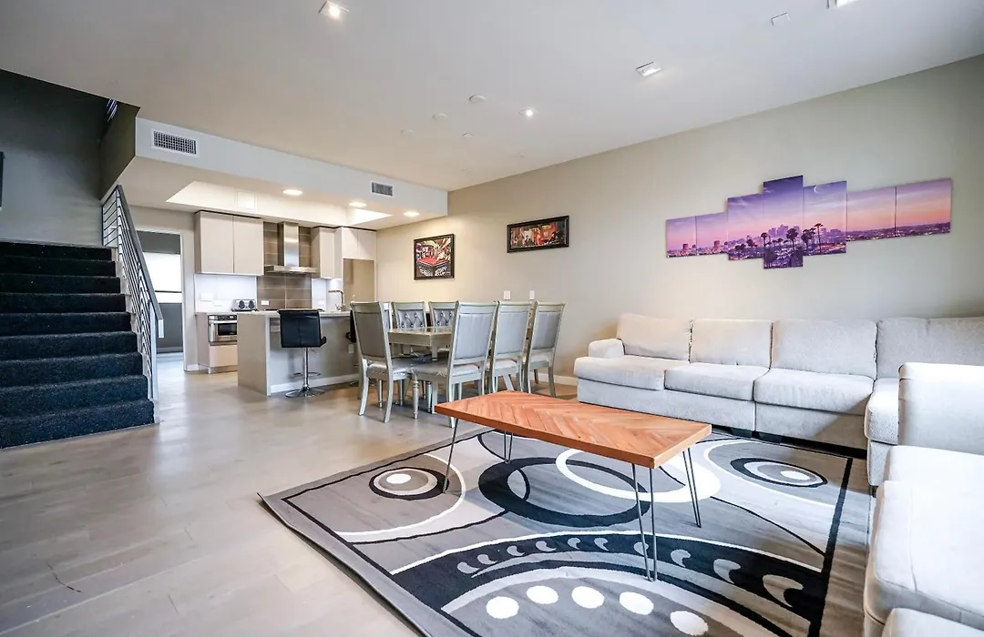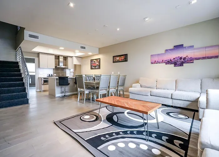 Hollywood Central Townhomes With Dtla View, Hollywood Sign Pvt Rooftop ligt op rijafstand van 10 minuten vanaf La Brea-teerputten en beschikt over gratis privéparkeerplaatsen voor degenen die met de auto reizen. Dit 3-badkamer appartement ligt binnen een autorit van 10 minuten van het amfitheater Hollywood Bowl en op een paar meter van het Plummer Park.